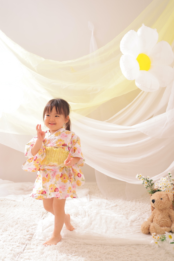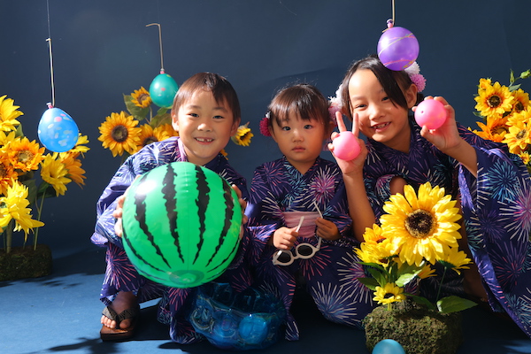 ちょうど背景と合ったひまわりの甚平を着てきてくれました🌻