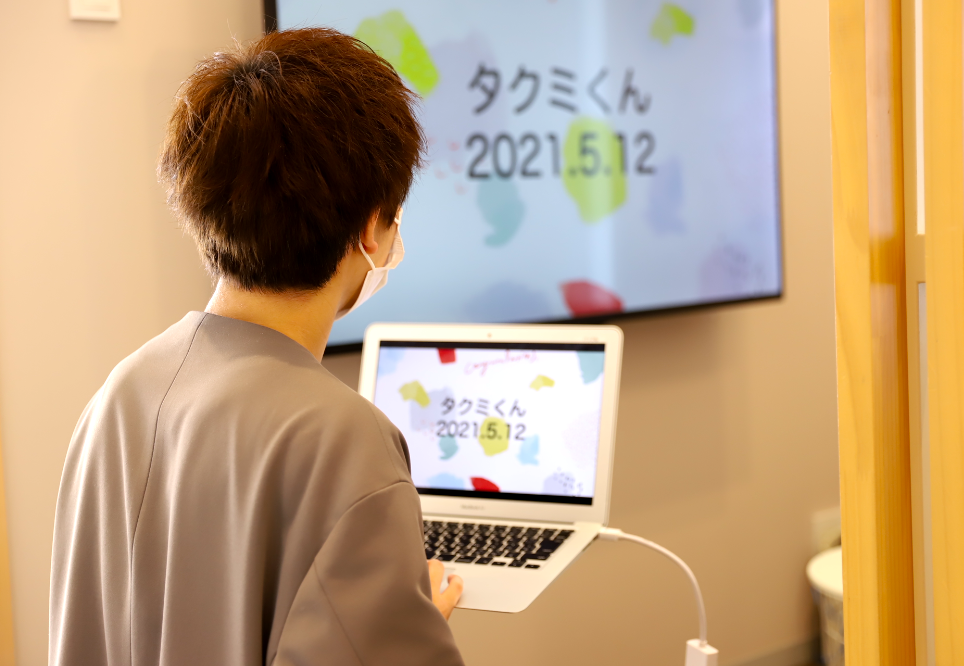撮影後にはお客様のデータを一部メモリアルムービーとしてお見せし、