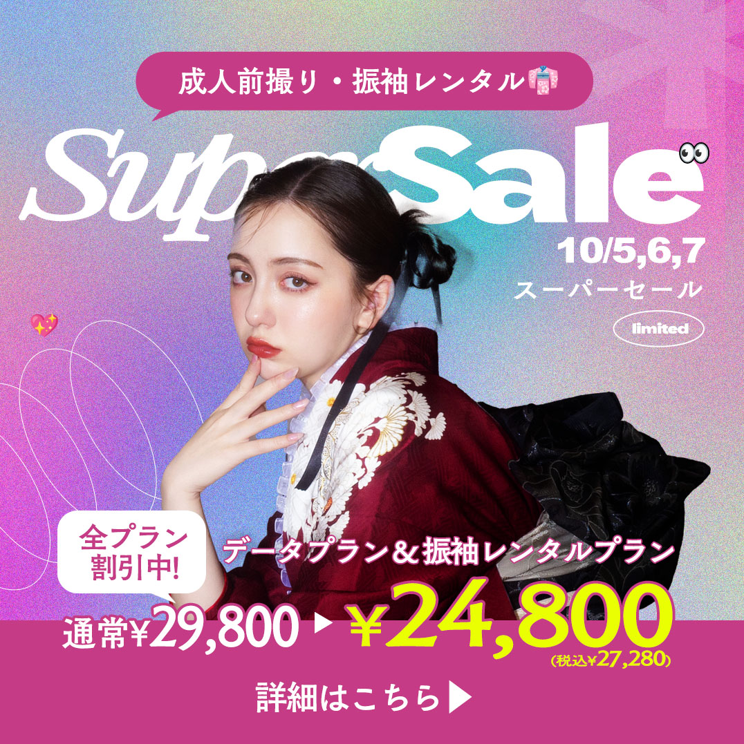 こんにちは! 北海道旭川市にある写真工房ぱれっと旭川店です! これから成人撮影や式当日振袖レンタルをご検討の方は必見です! 10月5日、6日、7日限定のスーパーセールを開催! とってもお得にご契約できちゃう特別期間なのでお見逃しなく!