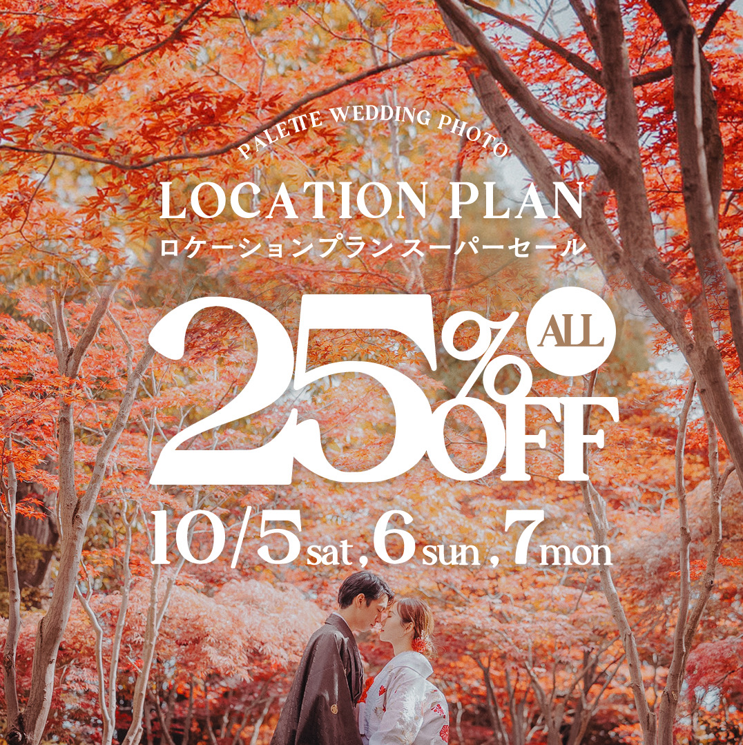 こんにちは! 北海道旭川市にある写真工房ぱれっと旭川店です! 10月5日〜7日の期間限定でロケーションプランがなん25%オフ!!ぜひこの機会をお見逃しなく!