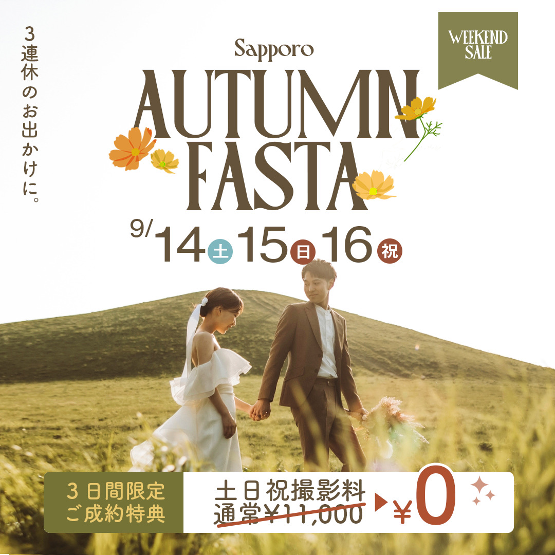 キャンペーンと併用可能なフェア限定の豪華特典をご用意してお待ちしております♪ 土日撮影は人気となっており、9月の空きも残りわずか・・! 10月をご希望されているお客様はお早めにご来店ください!