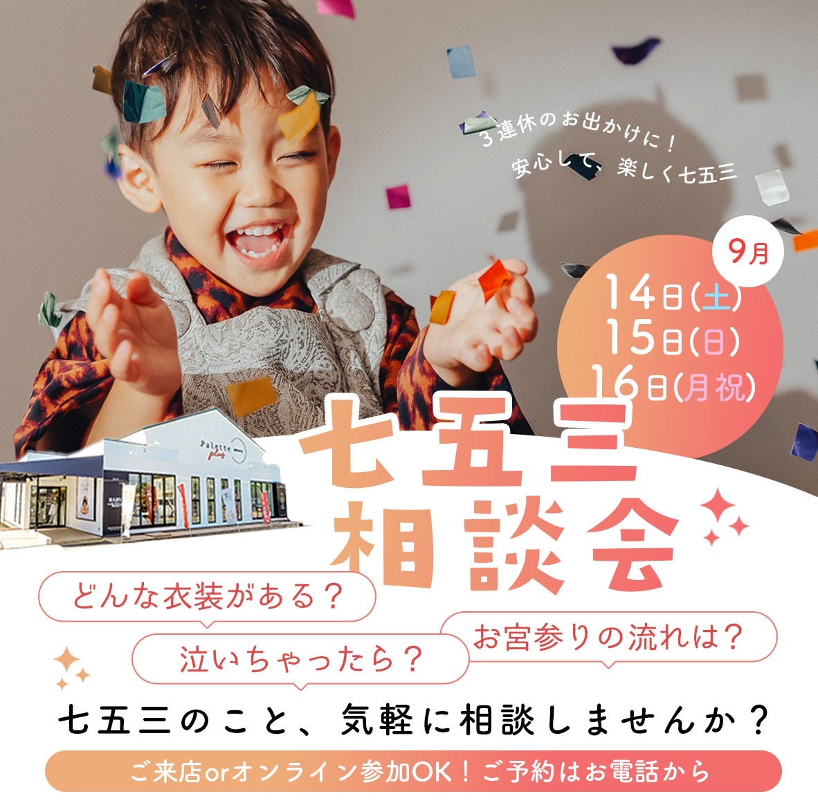 大好評だった七五三相談会! 3連休で第2弾開催致します!! 気になることや心配事も事前に聞いて不安解消!✨ 七五三の撮影をお考えの方はこの機会に予約しちゃいましょ!
