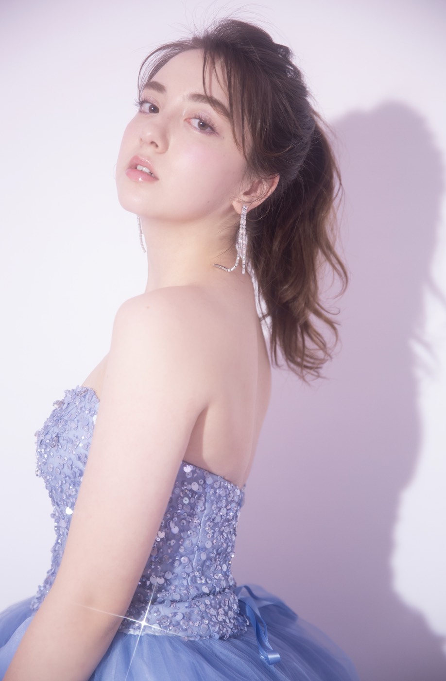 きらきらのドレスに、大振りのイヤリングでインパクトを。