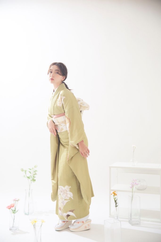 淡い緑の振袖は透明感があり、可愛らしい印象に。