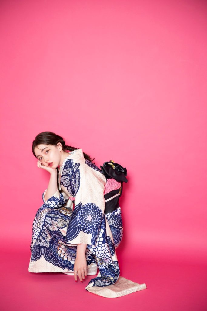帯の合わせ方によって可愛らしくも、大人っぽくも着ていただけます。