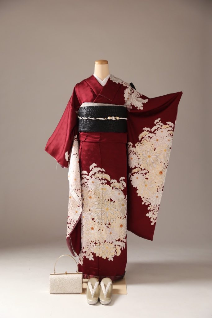 はっきりとした赤地に白いお花がシンプルかつ華やかな振袖。