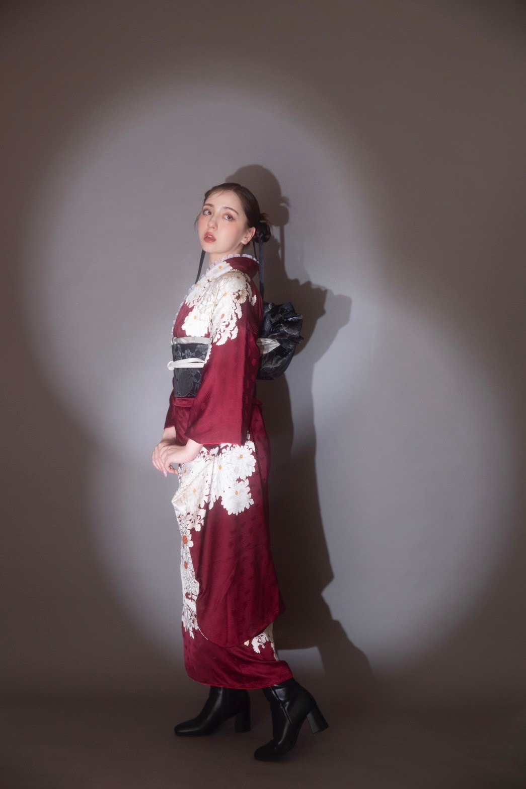 お振袖もネイビー×イエローでスポーティーな印象になったり変幻自在なお振袖です。