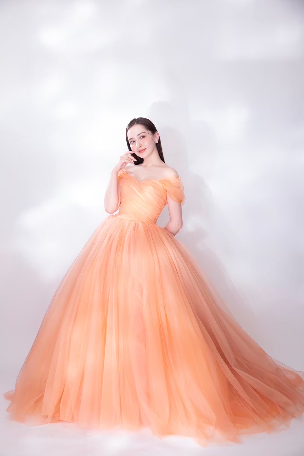オレンジのふわっと可愛らしいデザインのドレス❤︎