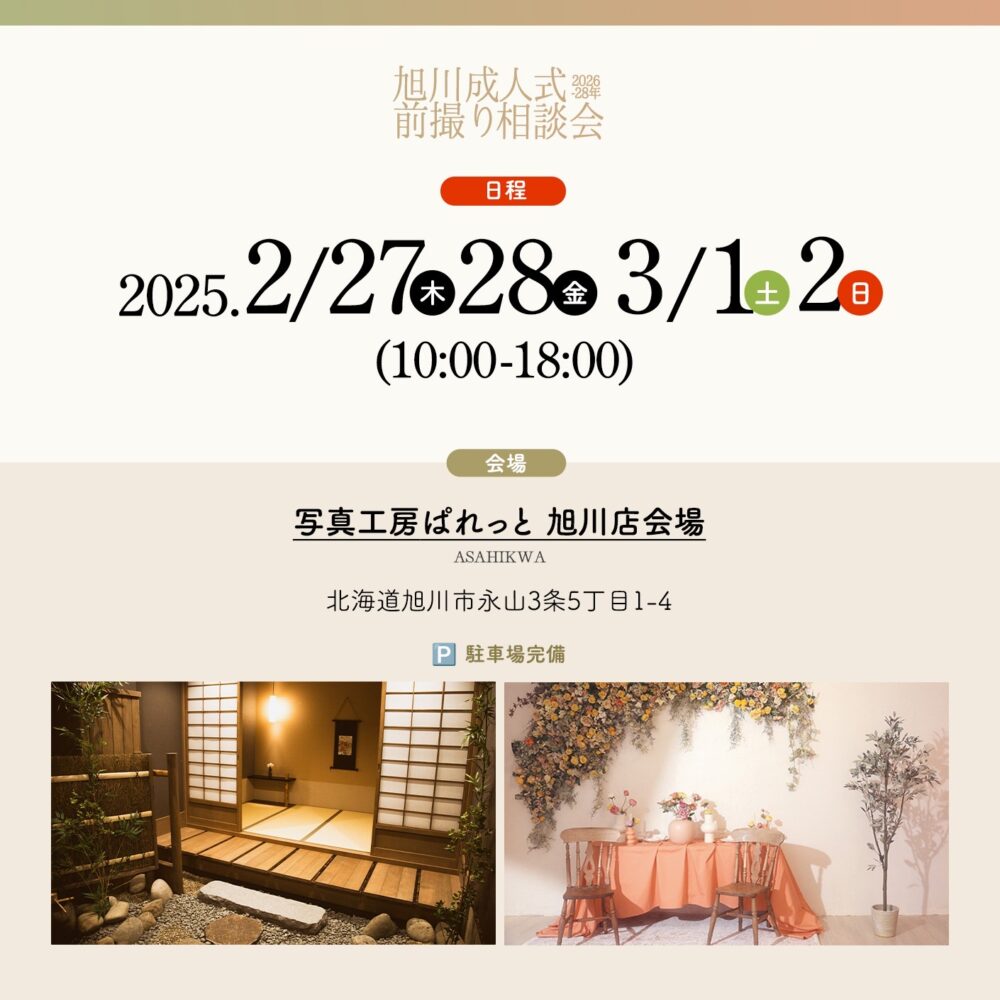 2025/02/122/27(木)28(金)3/1(土)2(日)旭川前撮り相談・予約会開催【最大16万円OFF】
