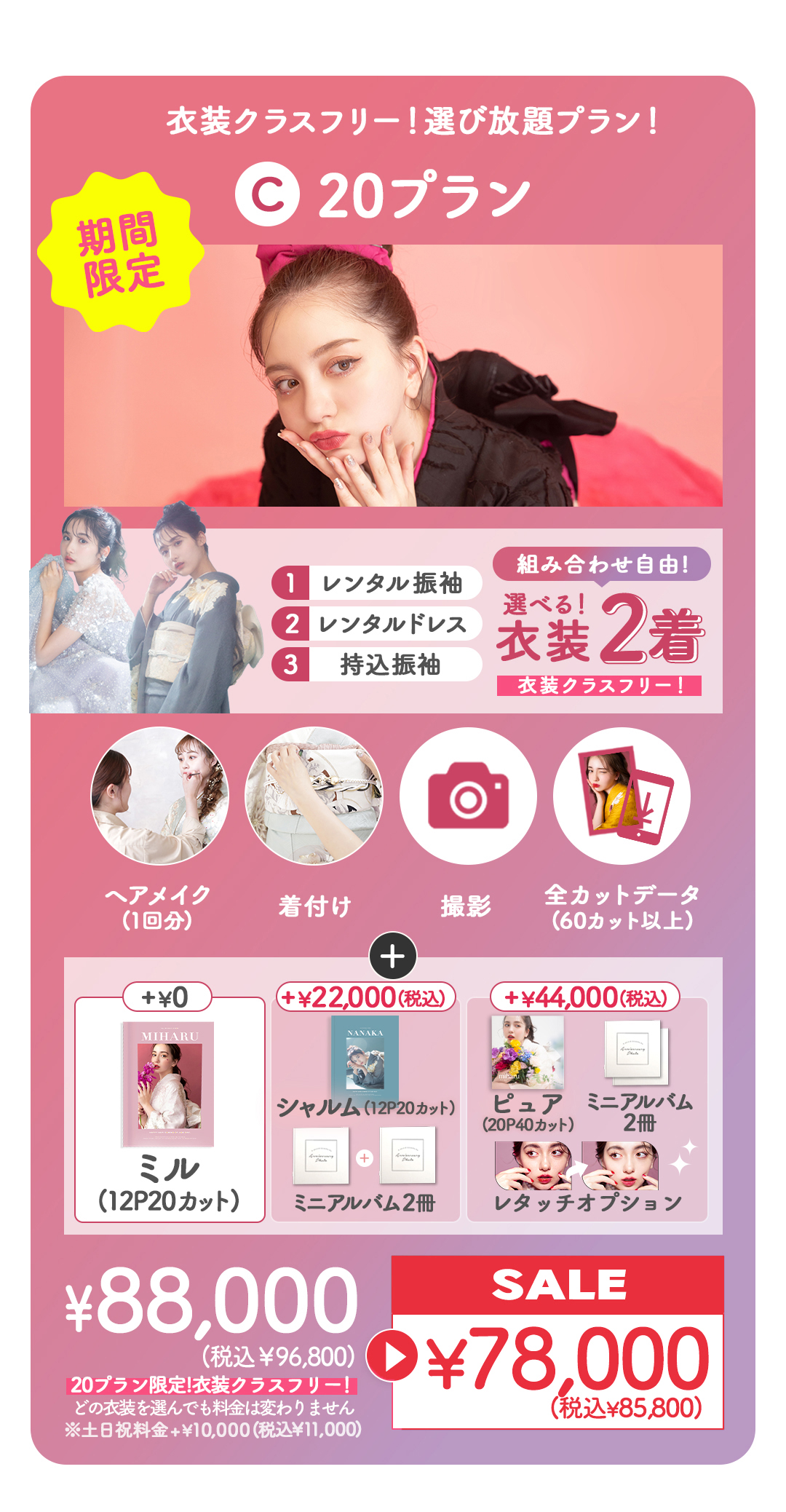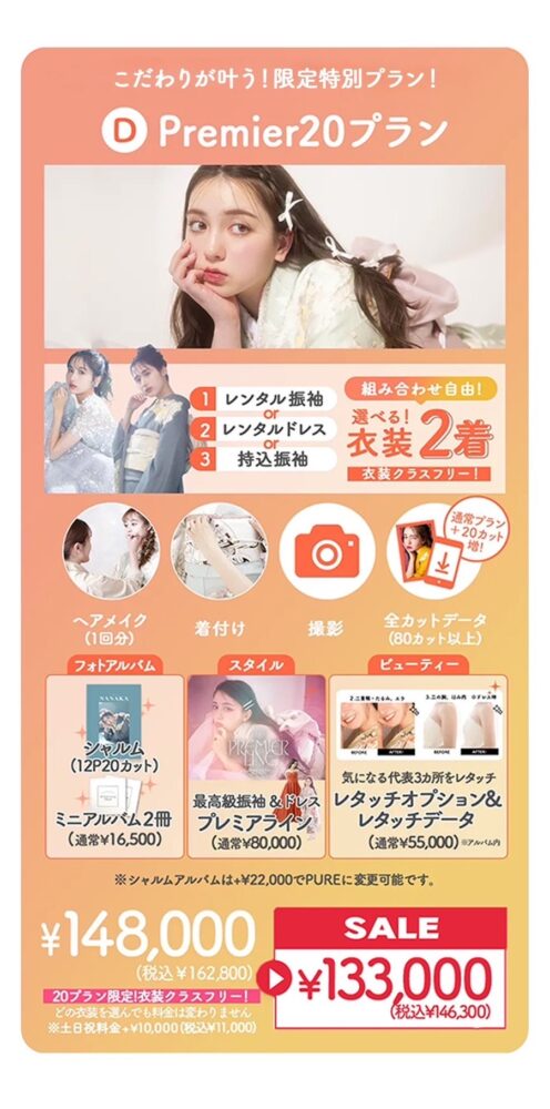 振袖1着+ブライダル御用達ドレス1着の合計2着!