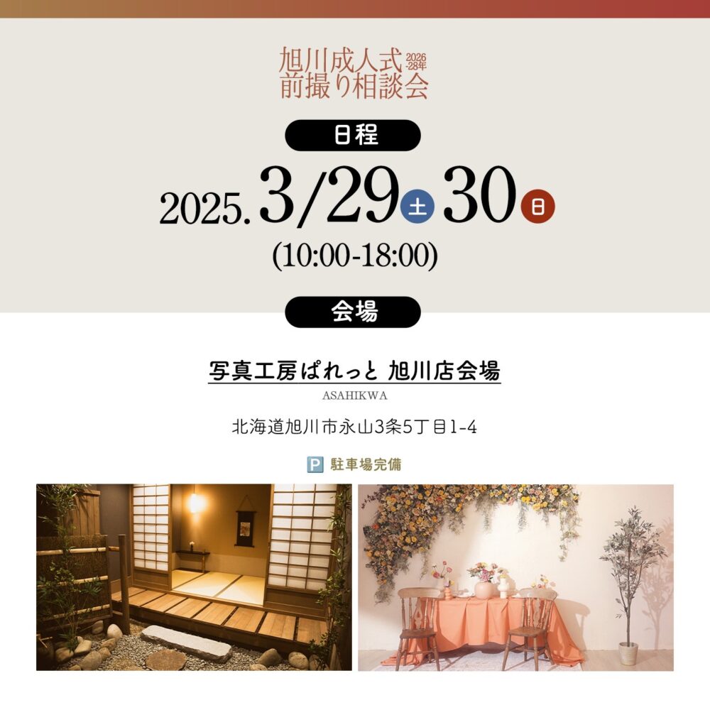 2025/03/22「 3/29(土)30(日) 」は旭川前撮り相談会! 土日は写真工房ぱれっと旭川店へ♡