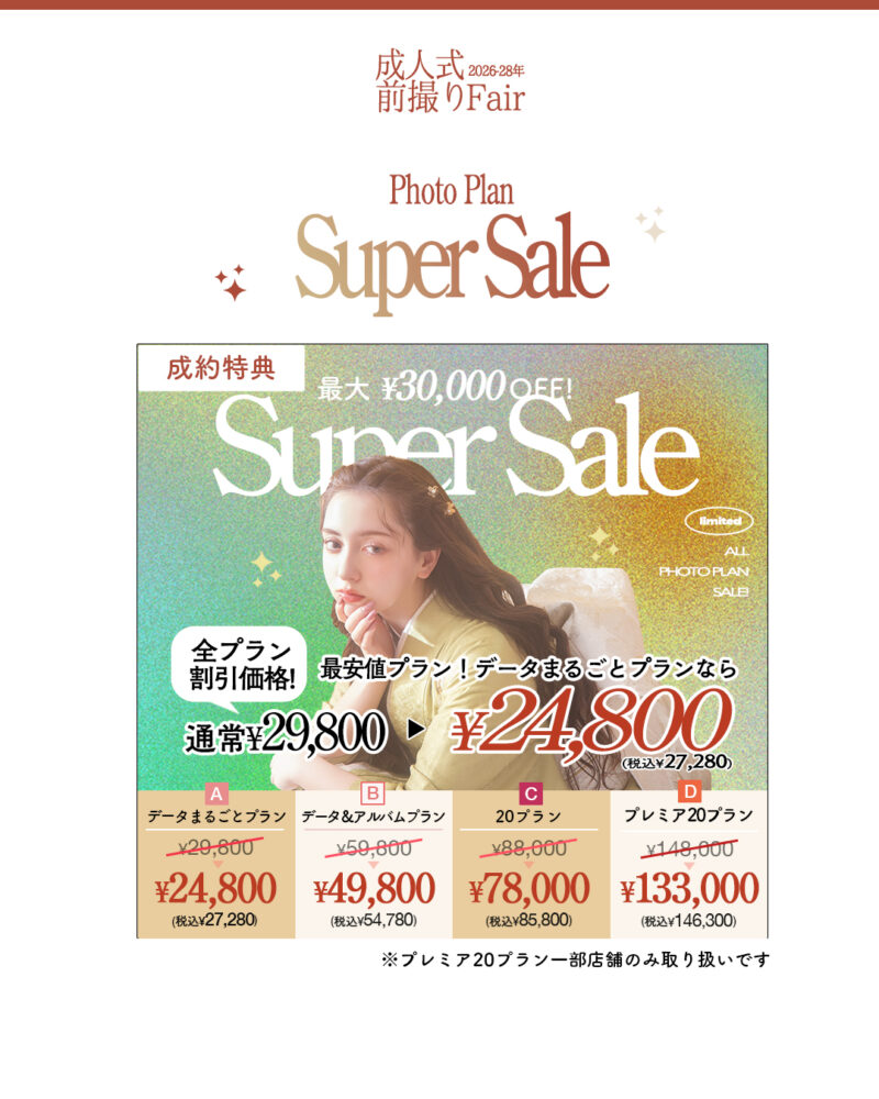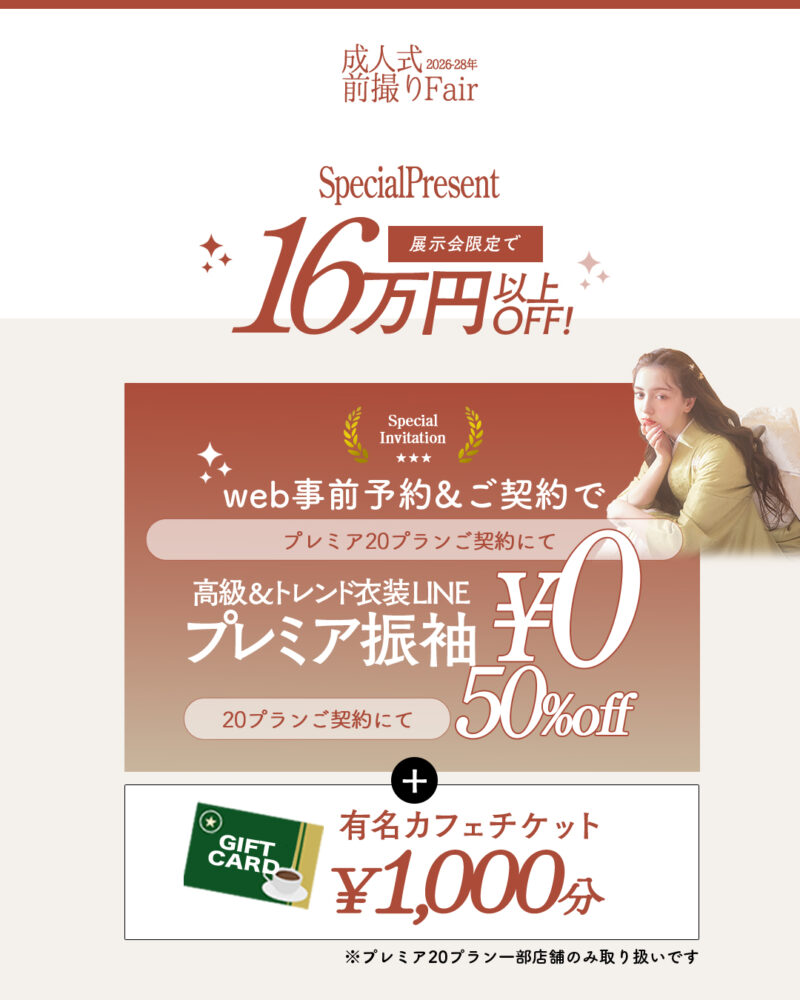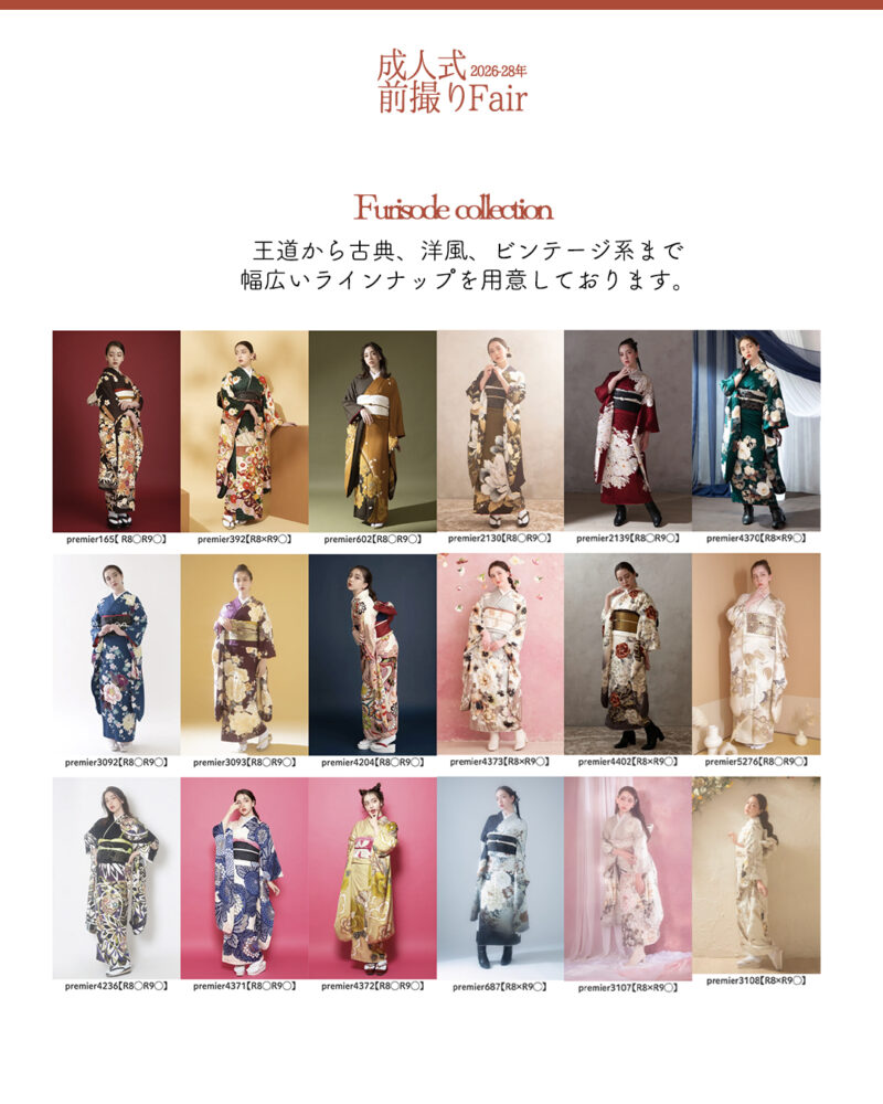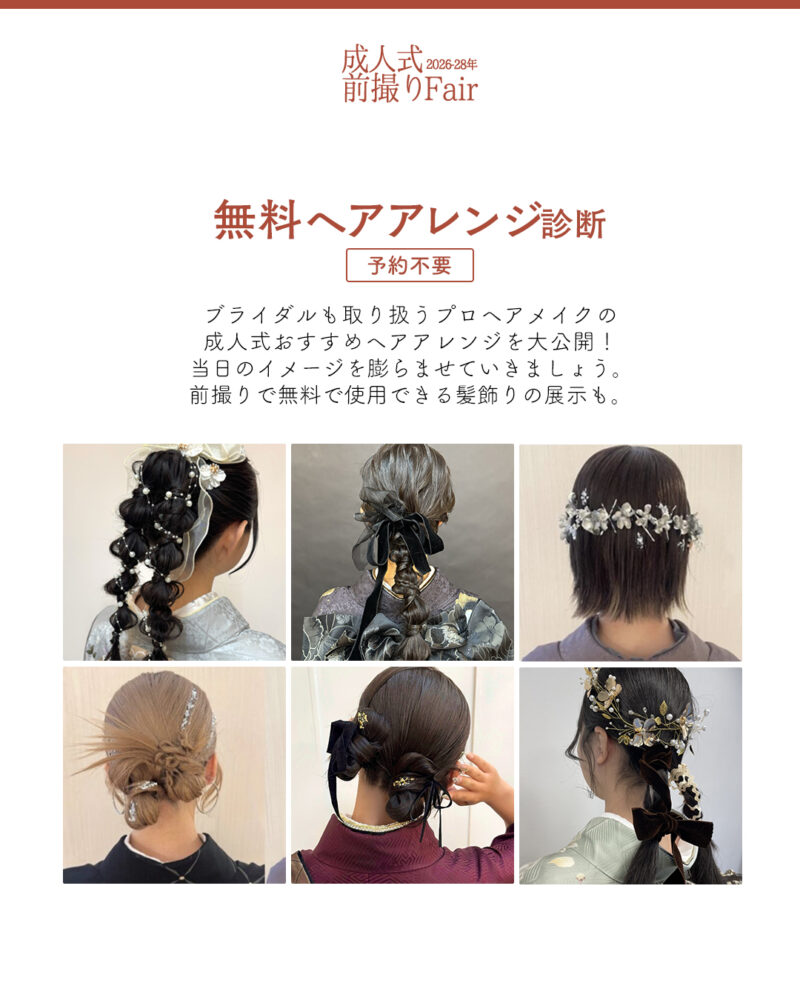「振袖前撮りフェア」では、以下の内容で皆様をお迎えいたします。