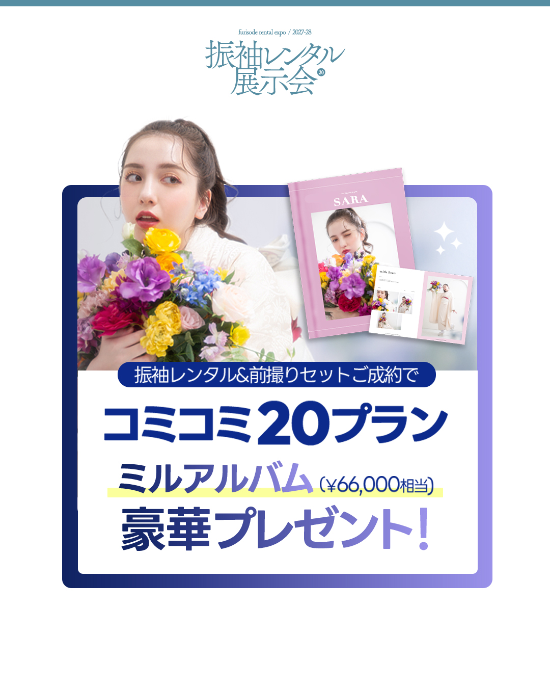 コミコミ20プランご契約で、プレミアライン振袖50%OFF(1着分)