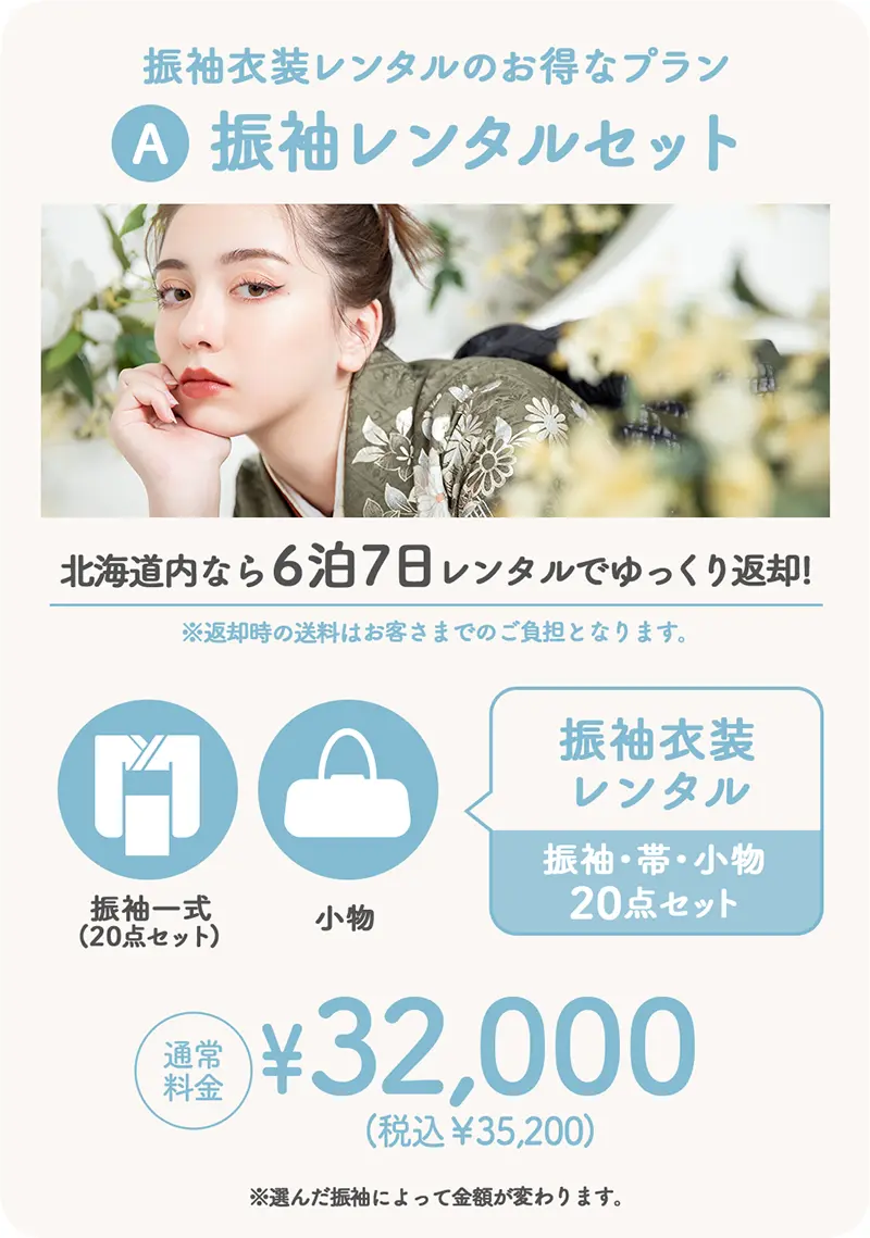 🤍着付けは地元で、振袖レンタルのみの方に嬉しい成人振袖レンタルが新価格!32,000円〜