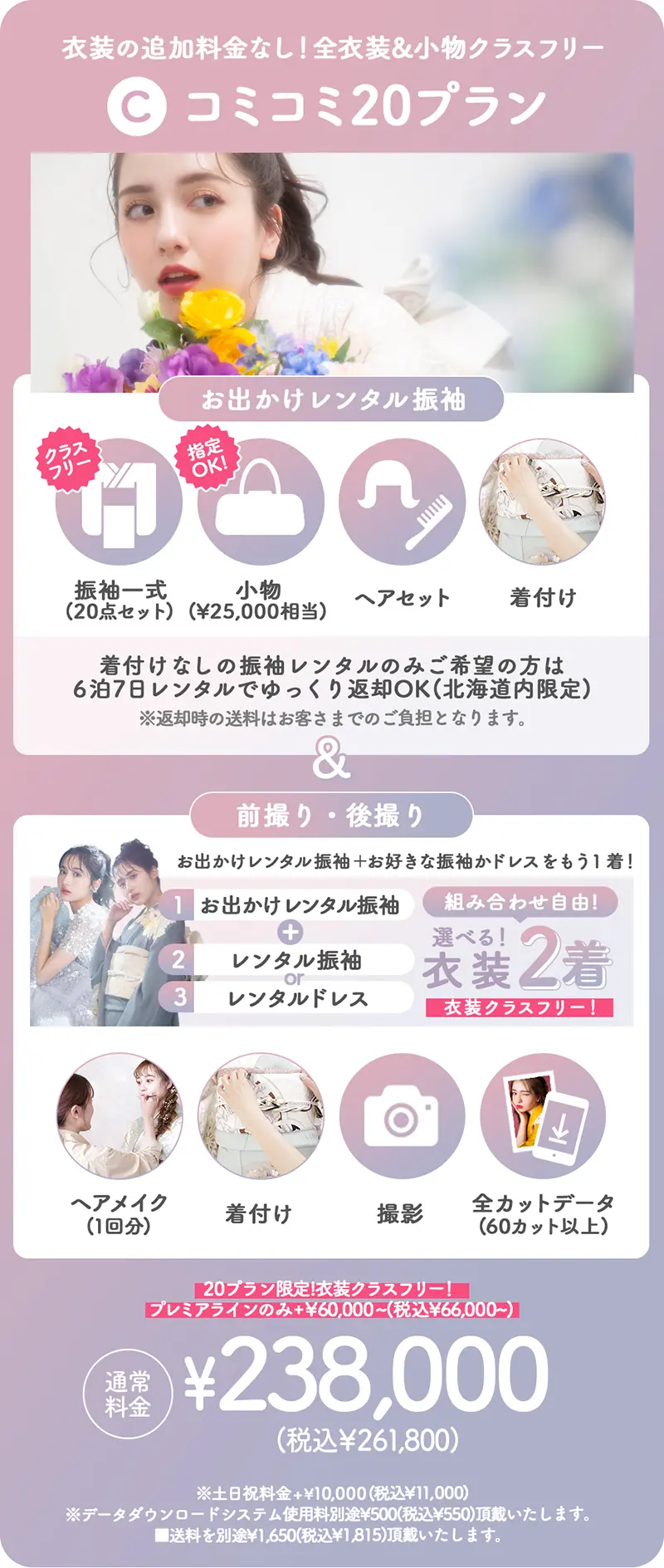 2027-2028年式振袖レンタルプラン「コミコミ20プラン」のご契約で「レタッチオプション」(55,000円相当)プレゼント!🎁✨