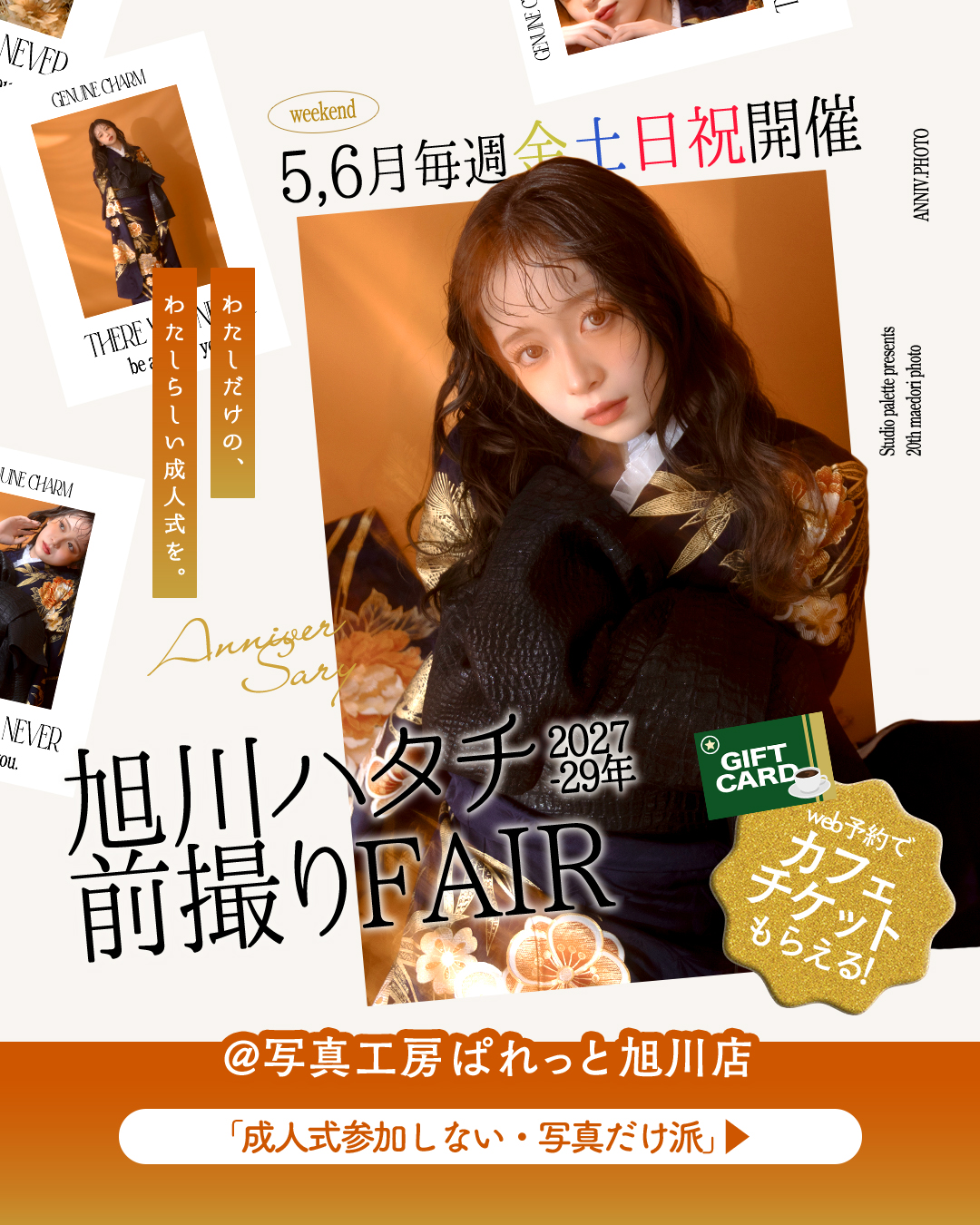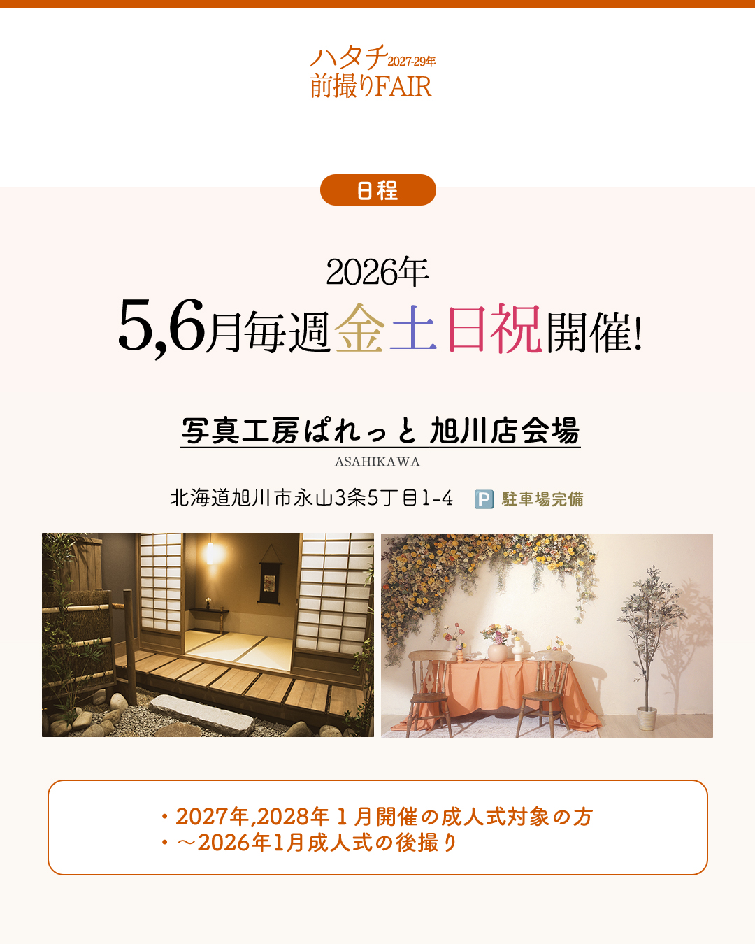 2026/04/235,6月の金土日祝は旭川ハタチ前撮りフェア開催*.+