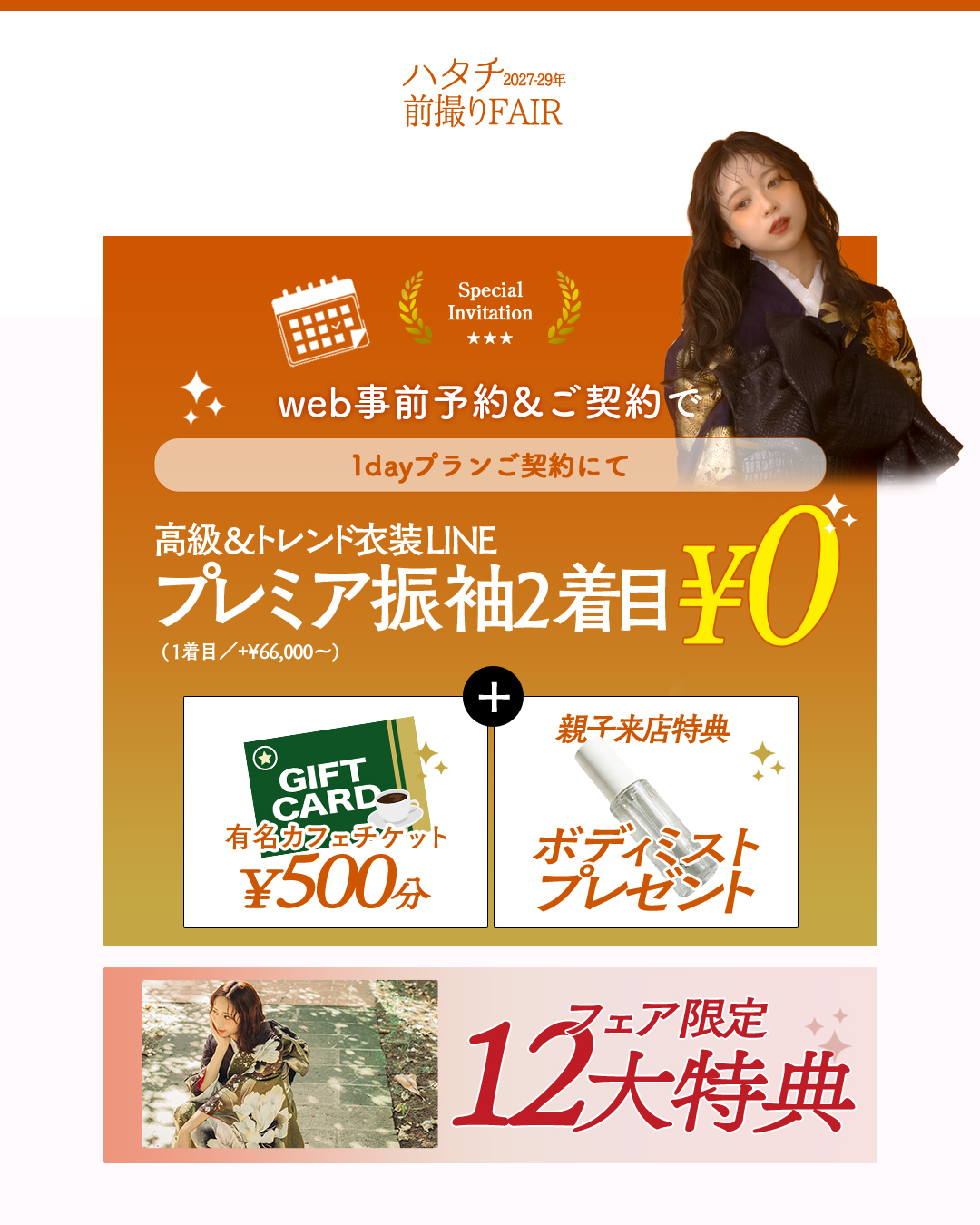 「前撮りフェア」では、以下の内容で皆様をお迎えいたします!
