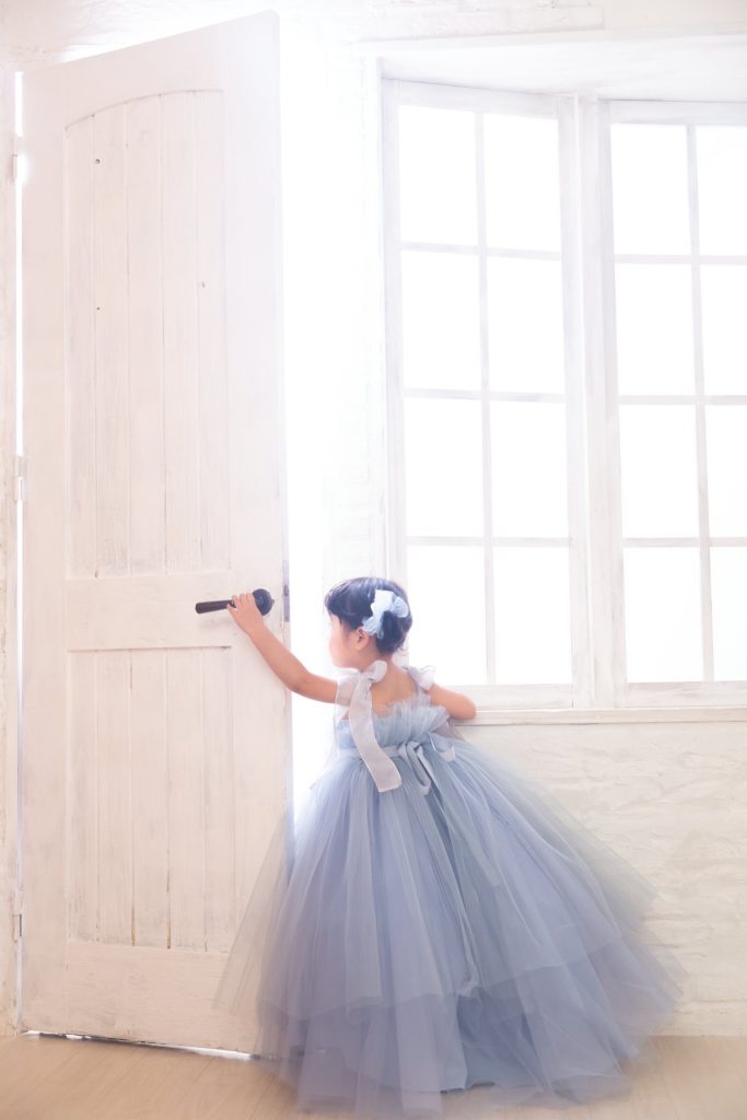 扉から光が差し込む真っ白でクリアな空間にぽつんと感が妖精のようです🧚♀️