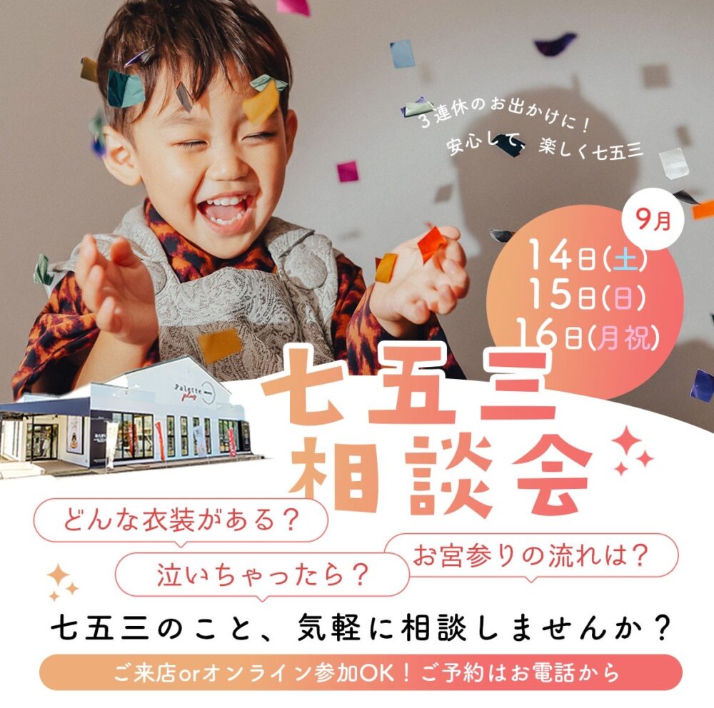 大好評だった七五三相談会! 3連休で第2弾開催致します!! 気になることや心配事も事前に聞いて不安解消!✨ 七五三の撮影をお考えの方はこの機会に予約しちゃいましょ!