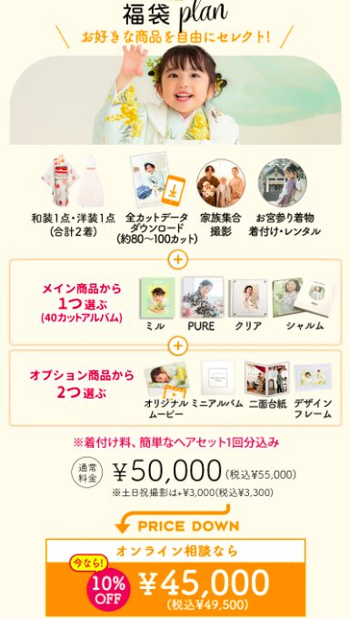大人気福袋プランをお選びいただくとパパママ着物レンタルが半額になっちゃいます♪