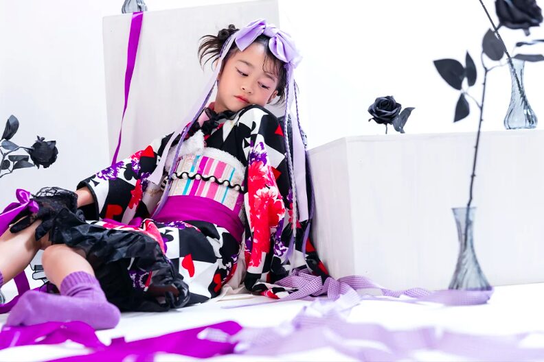 7歳女の子:個性が爆発!『ゴシック×ポップ』な着物スタイル