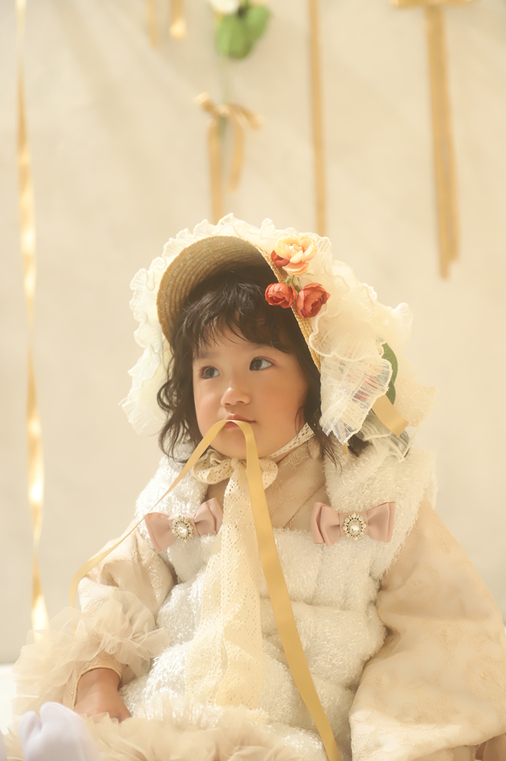七五三撮影では、基本的に和装と洋装を1着ずつお選びいただけます 。 大人ドレスブランドから買い付けた高品質な新作ドレスなど、他にはないハイセンスな衣装が揃っています 。事前の予約制ではないため、当日のコンディションを見ながら、ホームページの衣装ギャラリーで候補に挙げていたものを中心に決定していきます 。