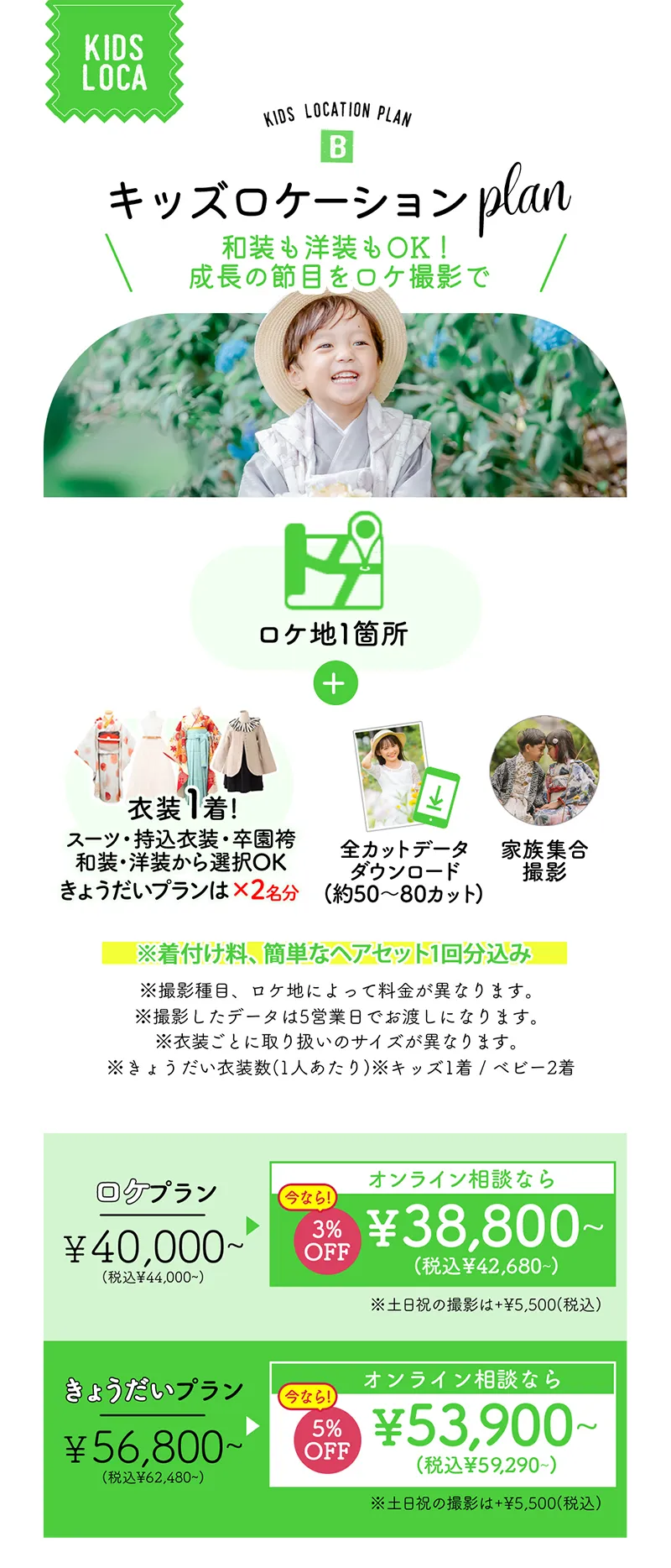 ※ロケ地によって料金が異なります