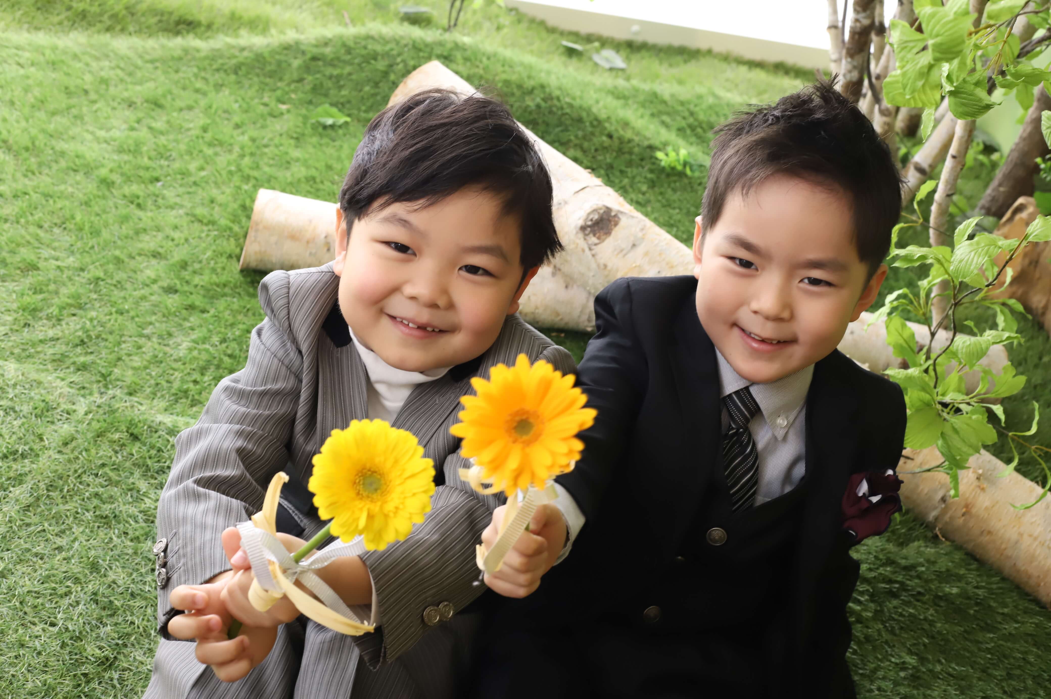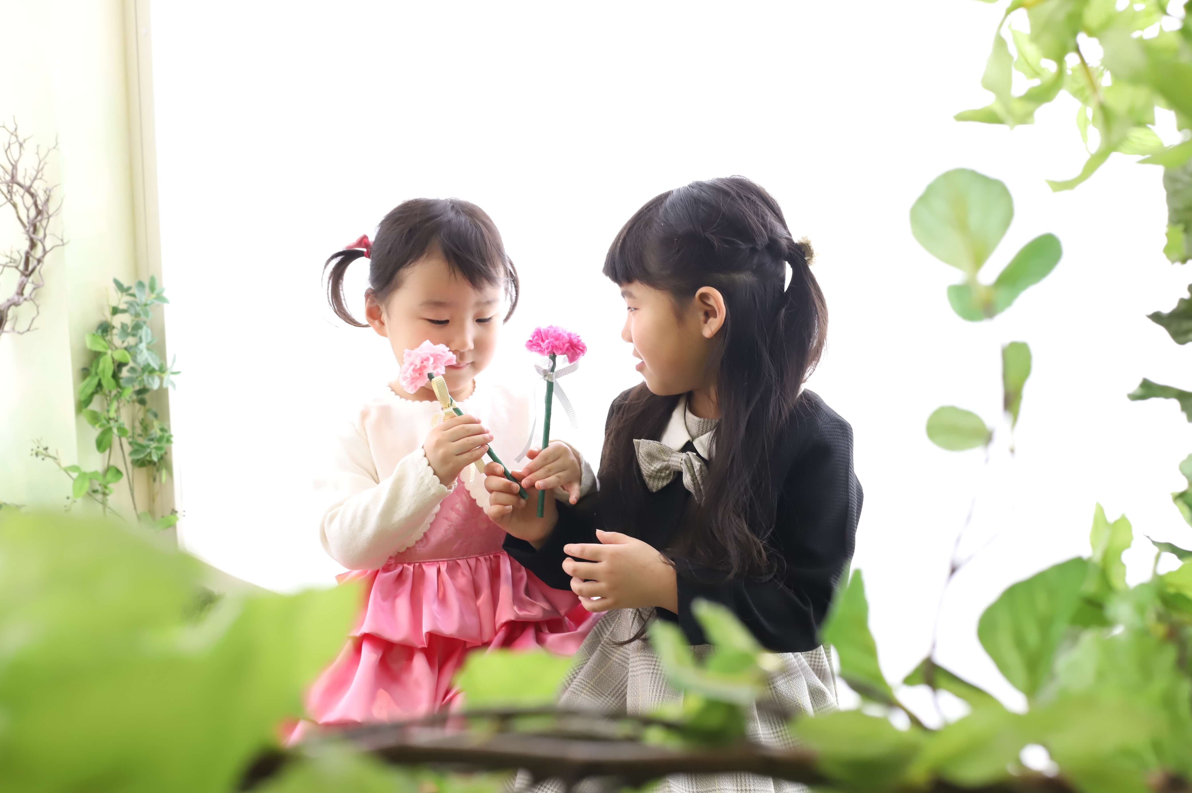今回は事前準備もしていただいての撮影会になりました!お友達がくれたお花に子どもたちもニコニコに!
