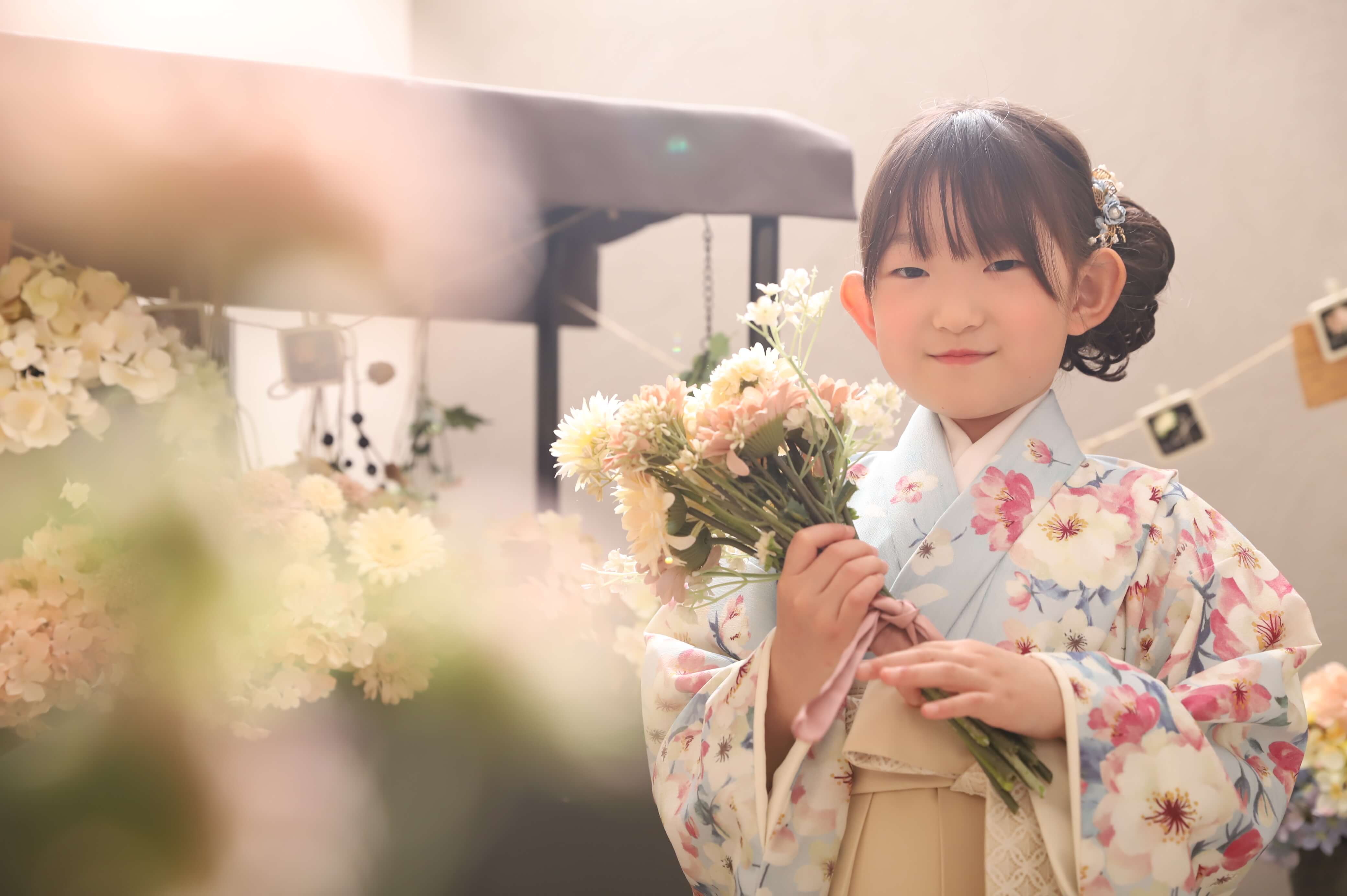 ドーナツ屋さんやお花屋さんなどで楽しく遊びながら撮影ができるので、