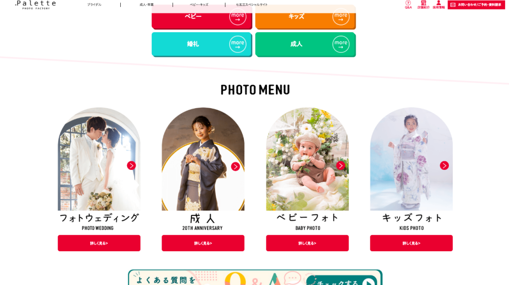 撮影種目:百日記念写真、ハーフバースディ、1歳お誕生日記念、七五三記念(男女)、入学記念写真