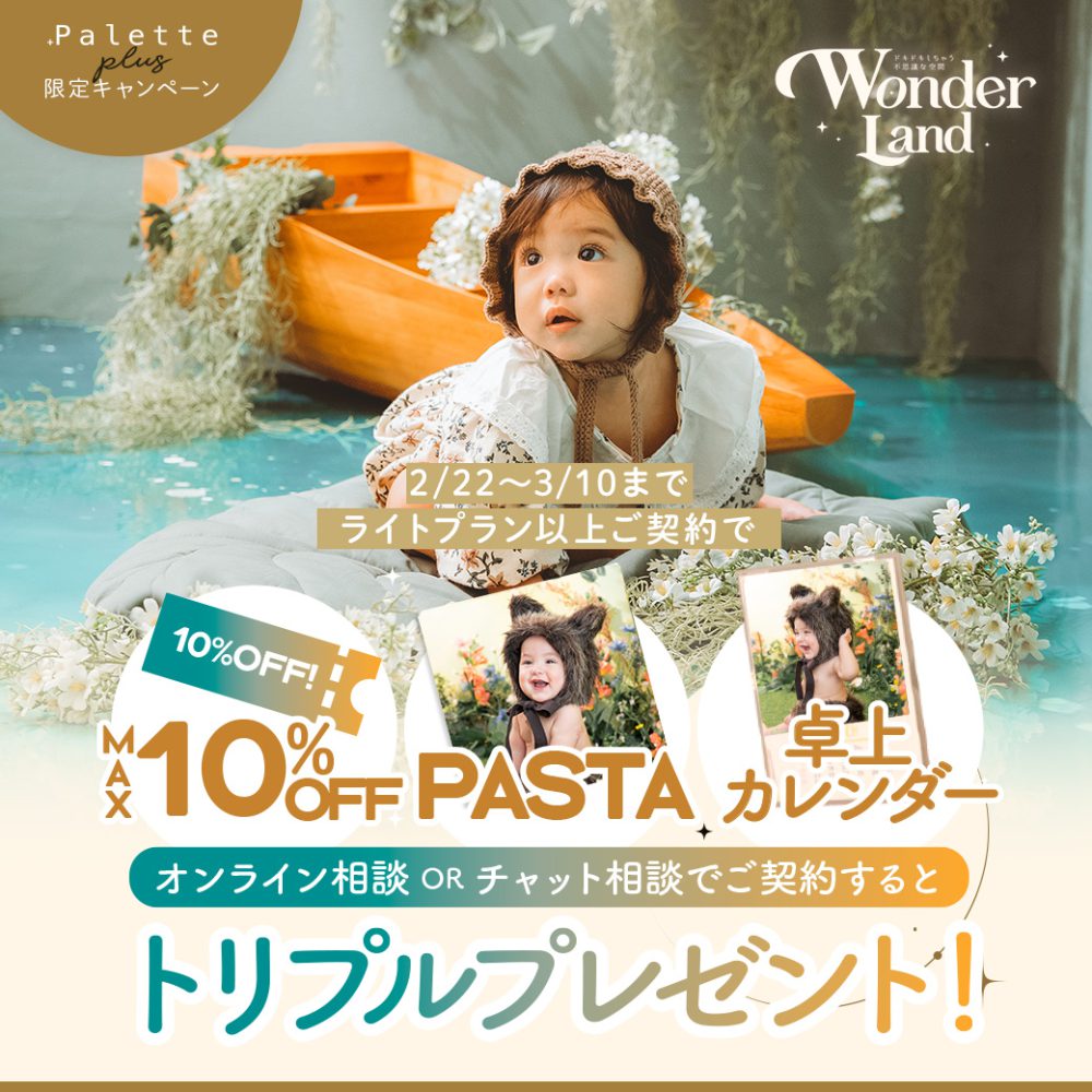 Palette Plus 店舗限定で緊急キャンペーンが始まりました!! 4月までの撮影をご検討されている方はぜひこのお得な期間にご成約されることをオススメします♬ まずはお気軽にオンライン相談のご予約をお待ちいたしております☆