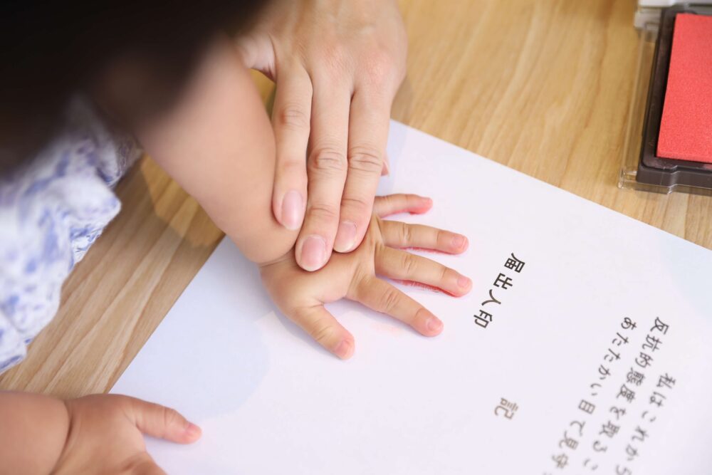 真っ盛りのお子さまに手形を捺印し正式にイヤイヤ期を証明✨