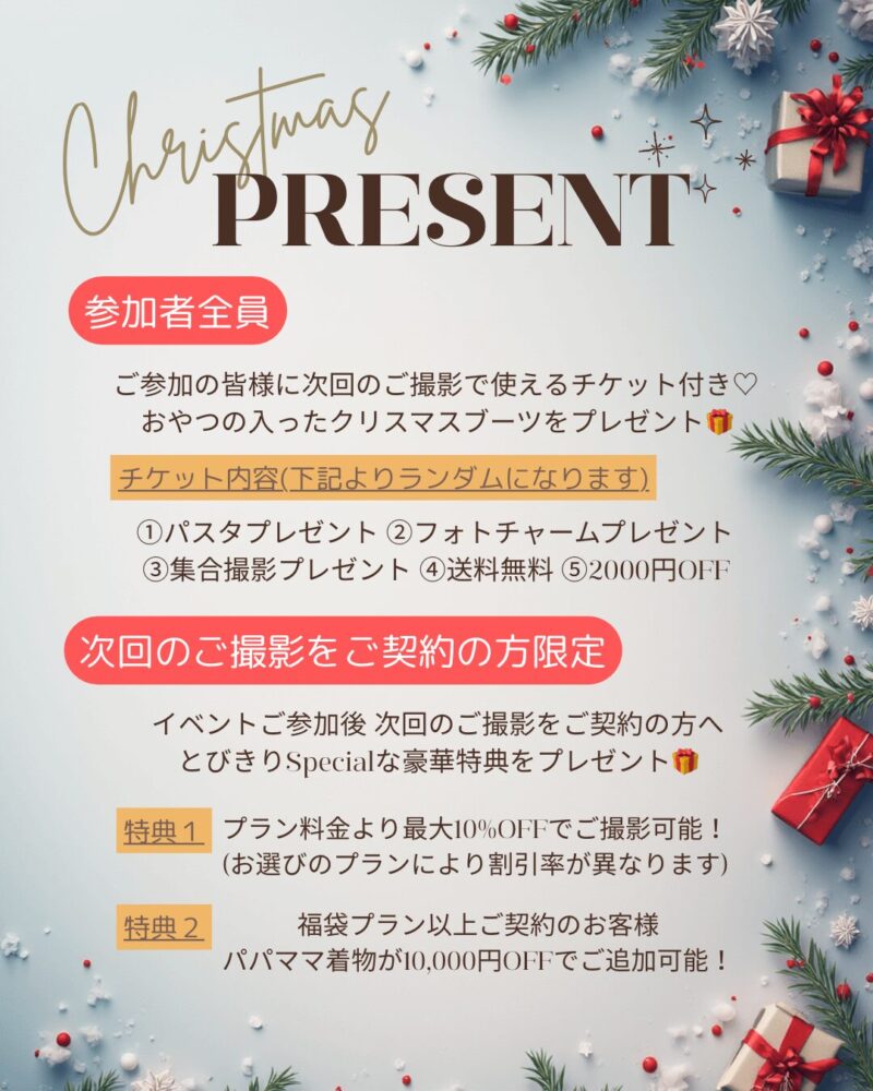 ご参加の方全員に次回ご撮影に使えるチケット付き♡おかし入りサンタブーツプレゼント🎁(1組につき1つとなります)