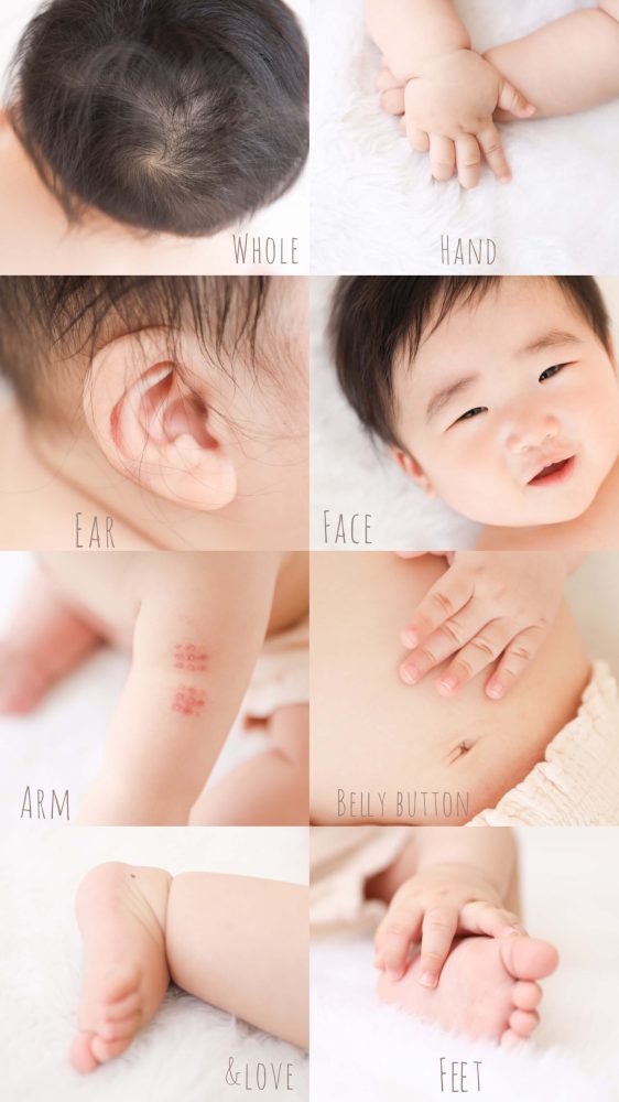 他にもおしりの蒙古斑や、お子様のチャームポイントのパーツのリクエストなども伺って撮影しました!
