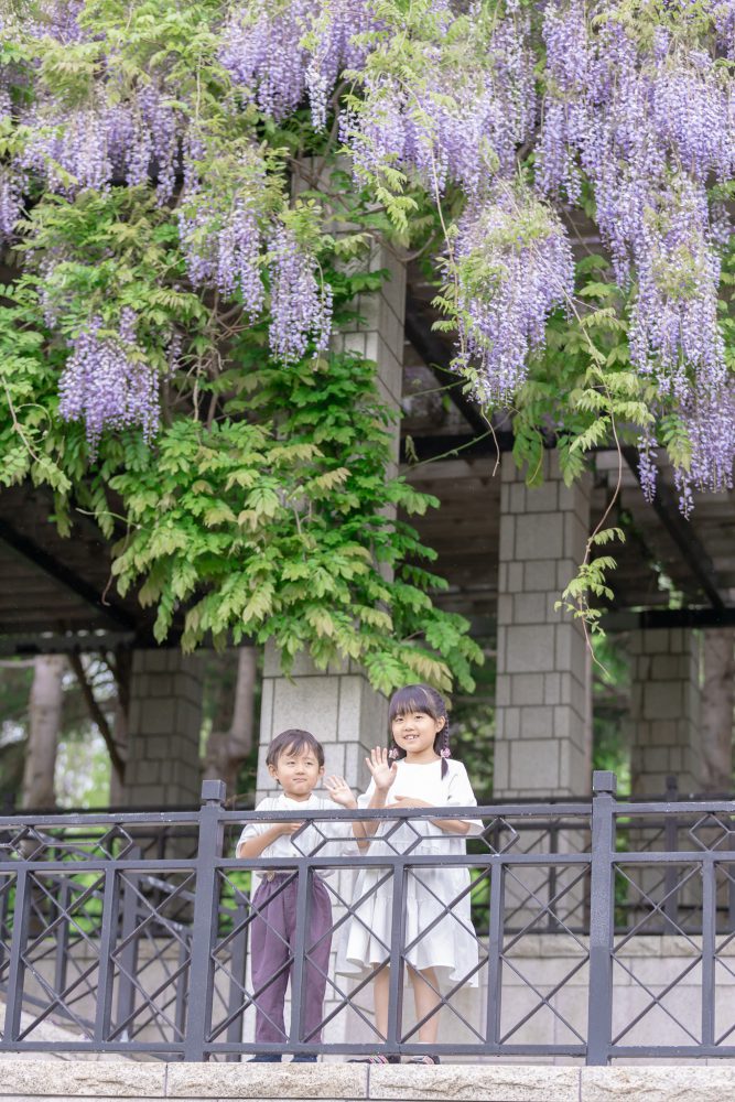 背が伸びたキッズさんは藤棚の高さとぴったりはまりました!