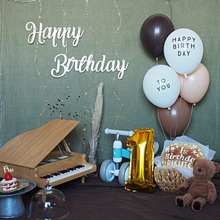 色やデザインで雰囲気を演出するガーランドは、バースデーフォトを華やかに仕上げるアイテムです。