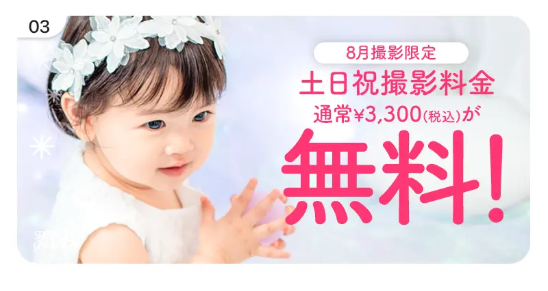 ③8月撮影限定土日撮影料金(3,300円)が無料!