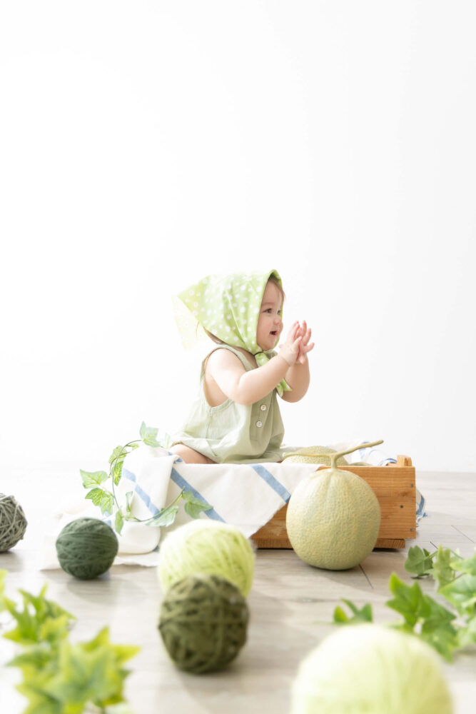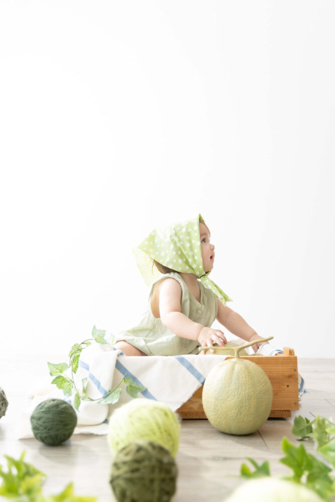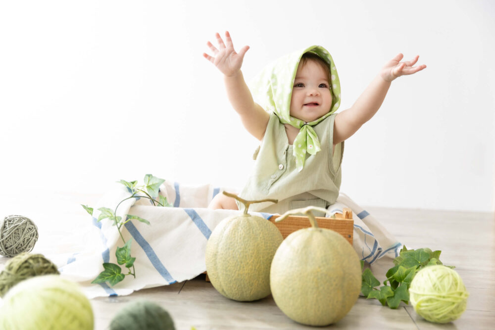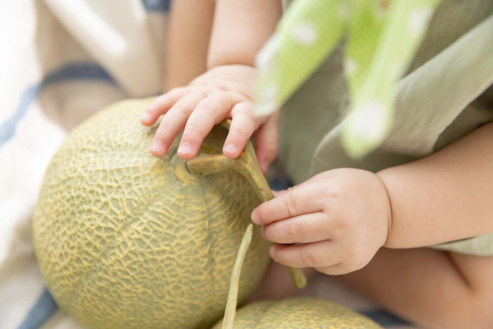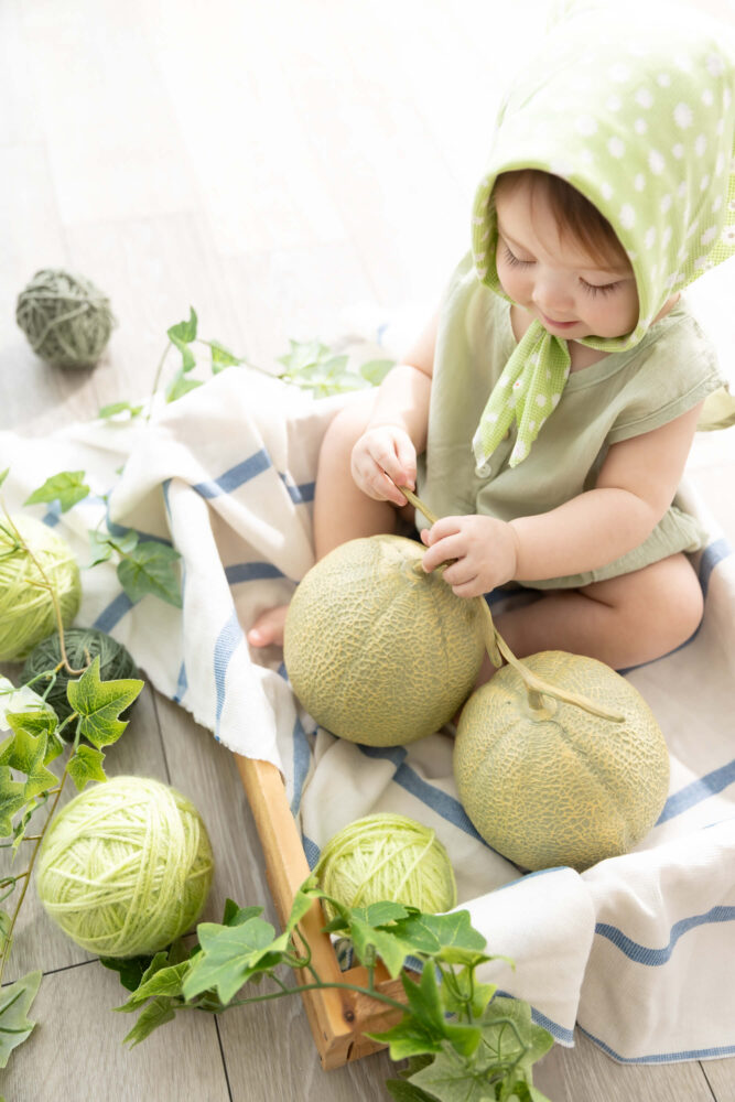 まんまるメロンと赤ちゃんのぽにょぽにょした可愛らしさが見事にマッチ!
