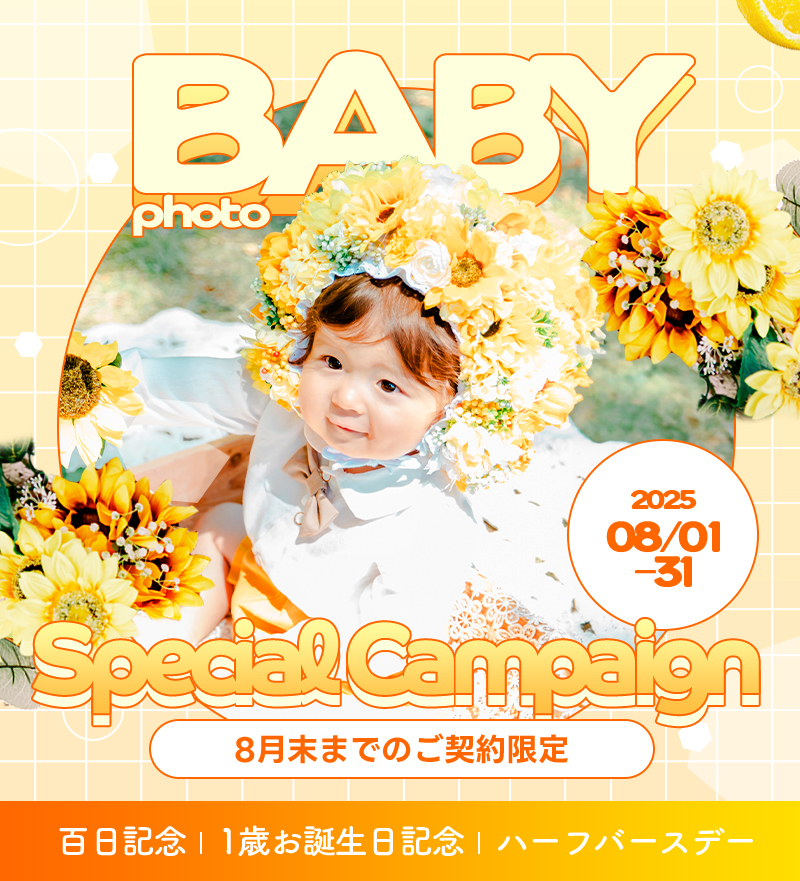 撮影種目:百日記念、ハーフバースディ、1歳お誕生日、七五三、入学