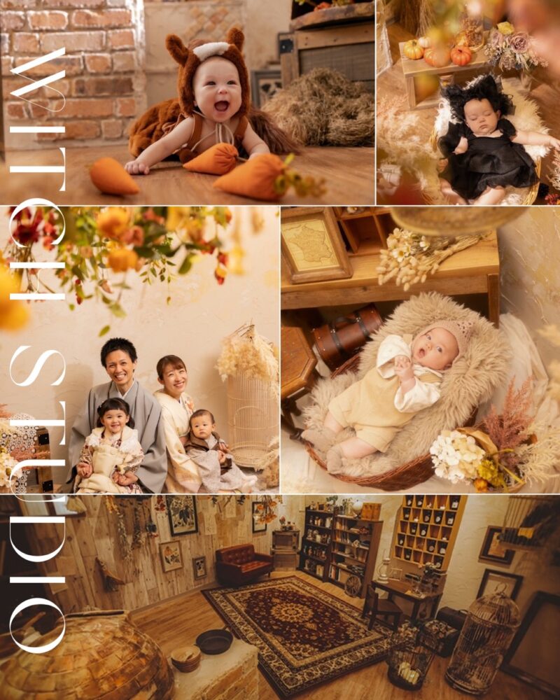 撮影種目:百日記念写真、ハーフバースディ、1歳お誕生日記念、七五三記念(男女)、入学記念写真