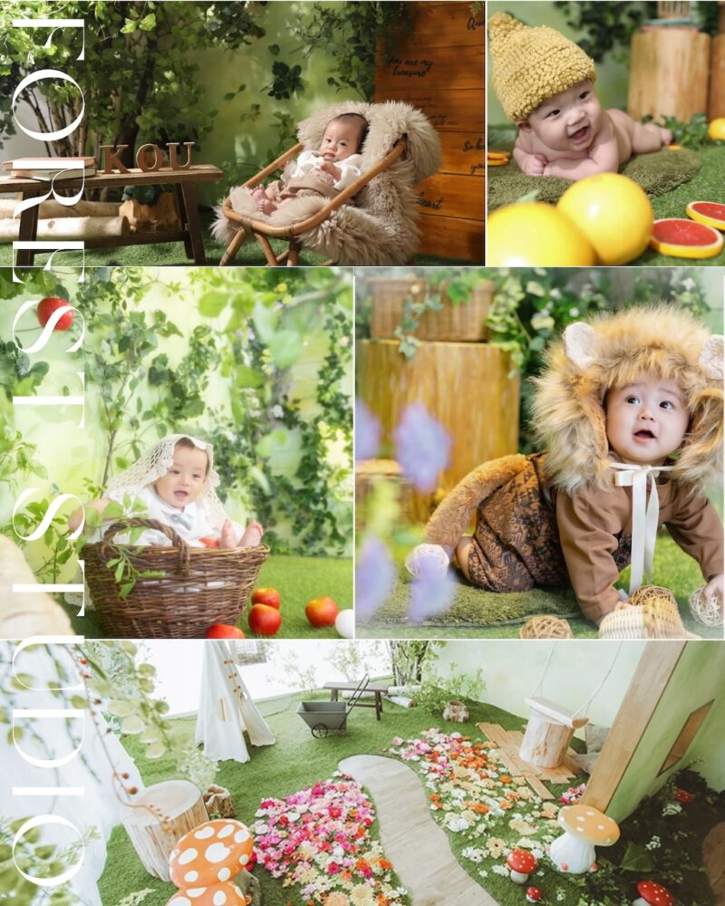 Forest(フォレスト)…まるで絵本の中に入り込んだみたい!森の中をイメージしたスタジオ。お花畑を通って、大きな樹の下にあるテントでぽかぽかひなたぼっこ!大好きな自然に囲まれた緑の空間!!