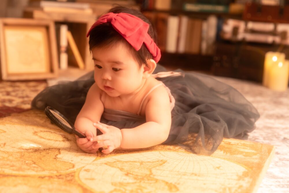 うつ伏せができる子ですと、「どこに行こうかな〜」と地図を見て悩んでいるような姿になり、とても愛おしいですね…♡