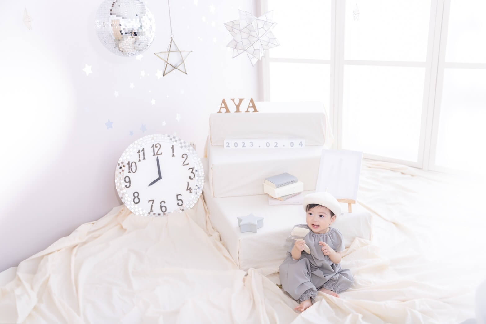 WHITEスタジオでベビー新ビジュアルをご紹介♡ たくさんの星に囲まれたとってもかわいいビジュアルです♡ ぜひご覧ください♪