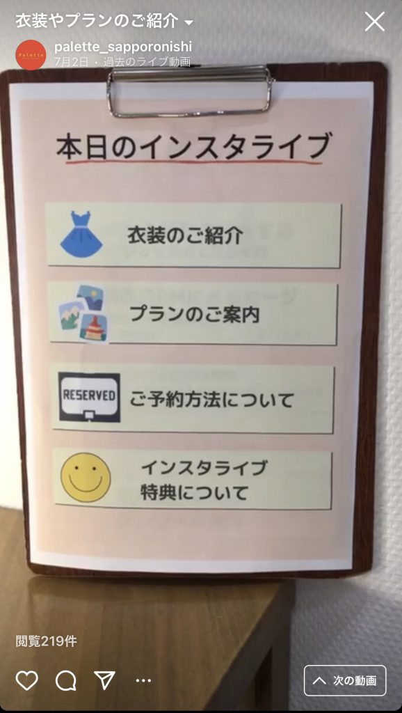 その中で衣装をはじめ、プランの紹介も行っておりますので、プラン表を見ただけではよく分からない、、、!という方は是非インスタライブをご視聴いただければ実際の商品も動画で確認していただけます!