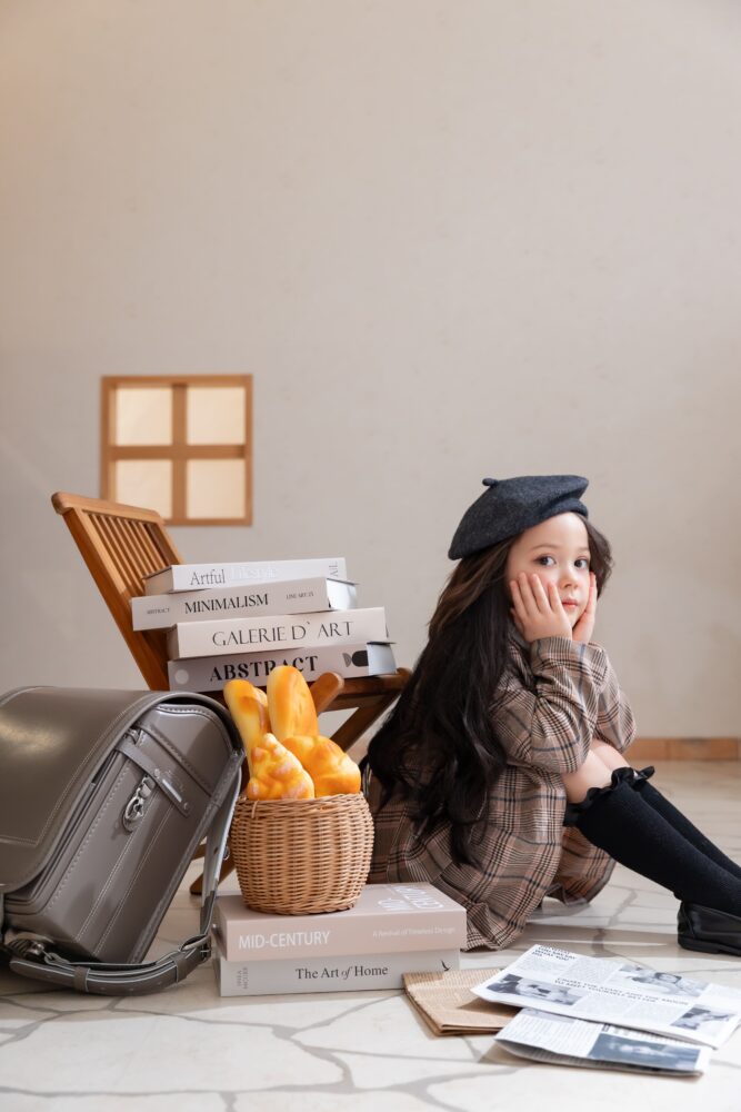 少し背伸びした「大人な女の子」へ: 真新しいランドセルと共に、少しだけお姉さんになった表情を引き出すライティングやポージングをご提案。お子様の成長を実感できる一枚に仕上げます。