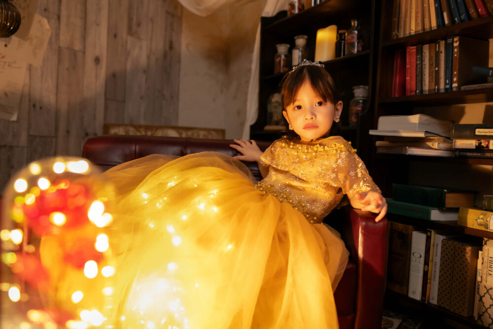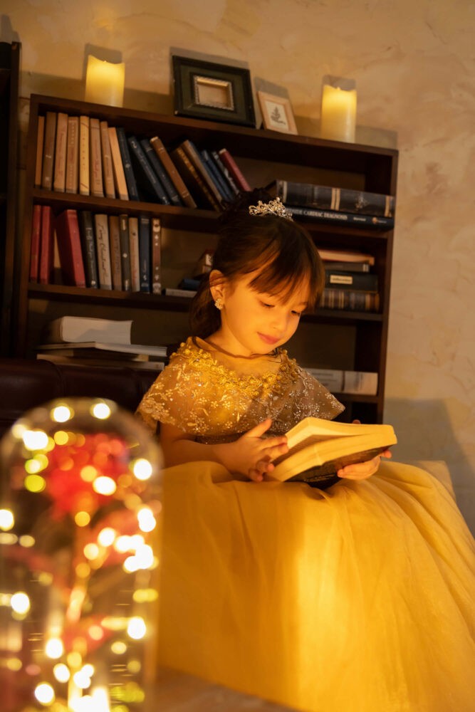 本に囲まれたアンティークな空間に佇む黄色いドレスのプリンセスといえば・・・
