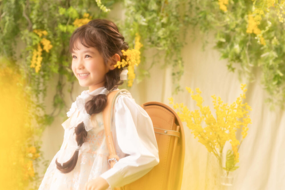 七五三記念や入学記念で撮れる「ミモザ背景」での新ビジュアルをご紹介します!