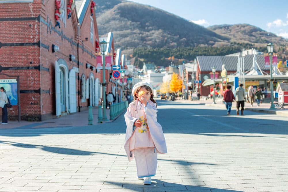 函館を代表する観光スポット「金森赤レンガ倉庫」。歴史情緒あふれる赤レンガの建物は、どこを切り取っても絵になる、まさに特別なロケーションです。 青空に映える赤レンガを背景に、お子様のハレの日の姿を、一生の宝物になるような美しい写真に残しませんか?