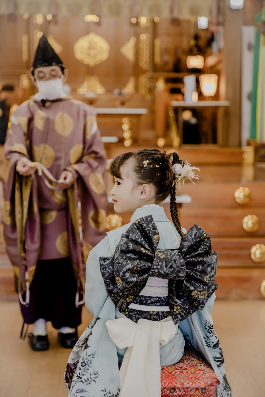 拝殿での撮影では、手を合わせるお子様の横顔にそっとピントを合わせることで、その真剣な眼差しや健やかな成長への祈りが、温度感まで伝わるように写し出されています!