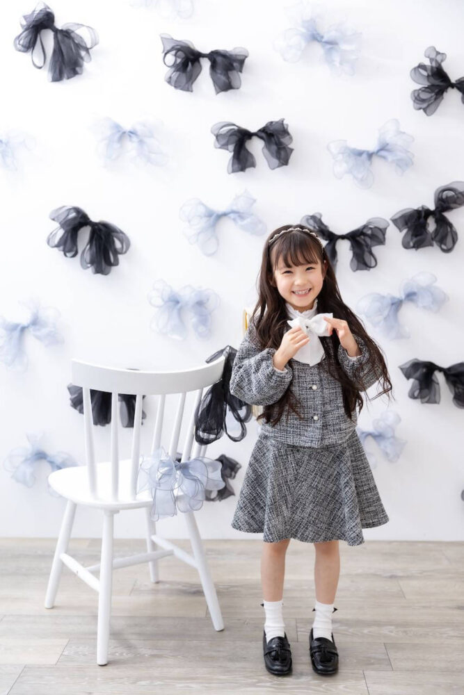 入学撮影では、スタジオの衣装だけでなく「持ち込みアイテム」を組み合わせるのがトレンドです。